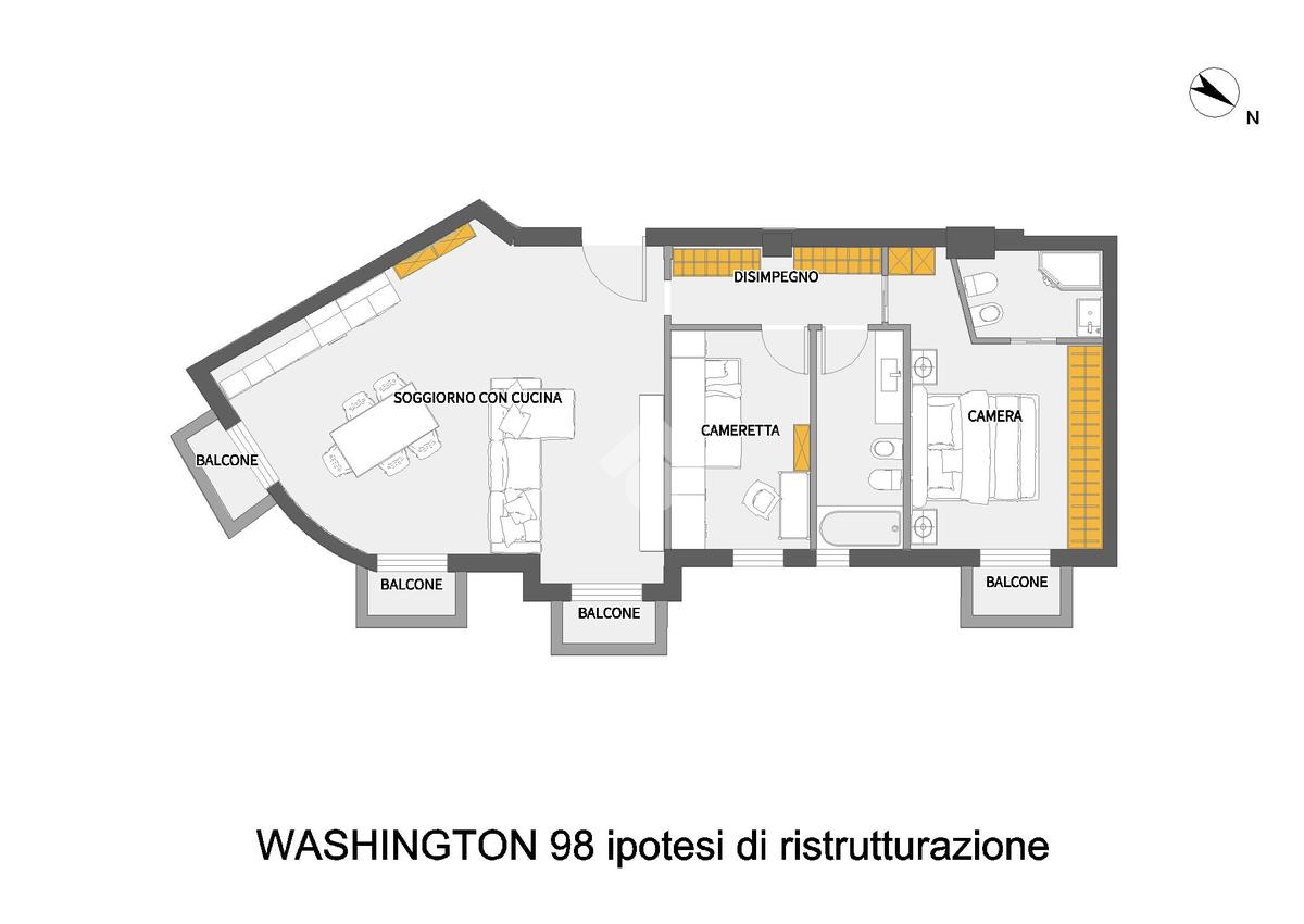 Via Washington. In pregevole stabile signorile d'epoca con portineria, appartamento posto al piano alto con ampio e luminoso affaccio. In stato originario che necessita di intervento di ripristino, composto da ingresso, soggiorno con doppio punto luce, cucina semiabitabile, due camere da letto e un bagno.